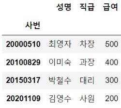 사번을 index로 사용하고 싶다면, 아래와 같이 지정해주세요.