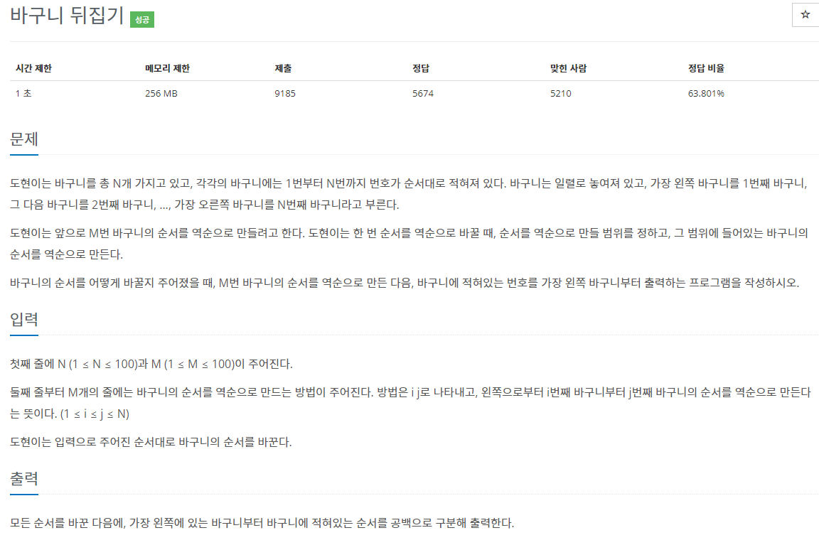 4) basket의 i번째부터 j번째 바구니를 바꿔야 하므로, list index에 접근하기 위해 i-1을, j는 포함되어야 하므로 j-1+1 = j를 range로 하여 basket list를 slicing 합니다.